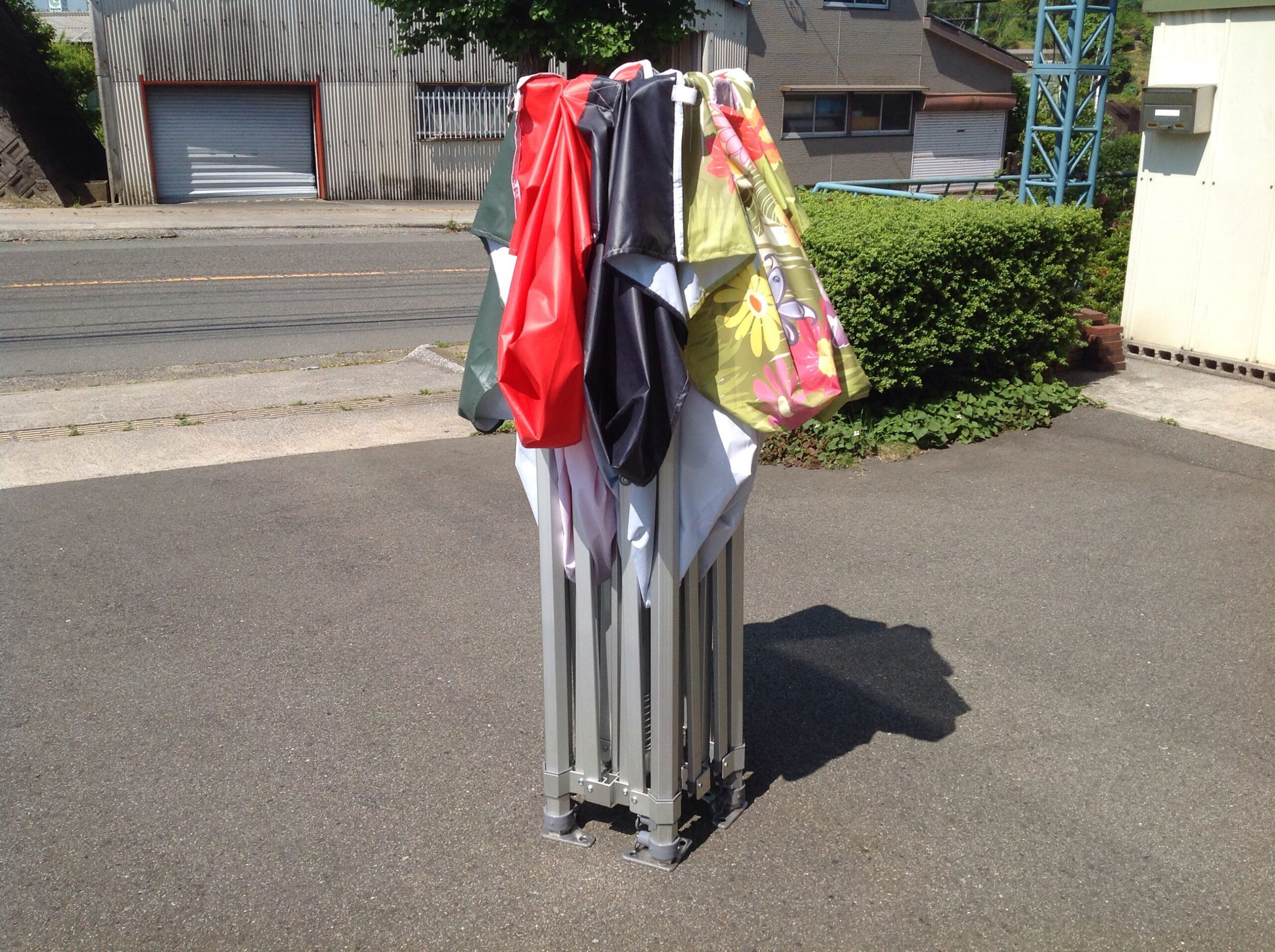 柱にはウエイトを載せて風対策をします。