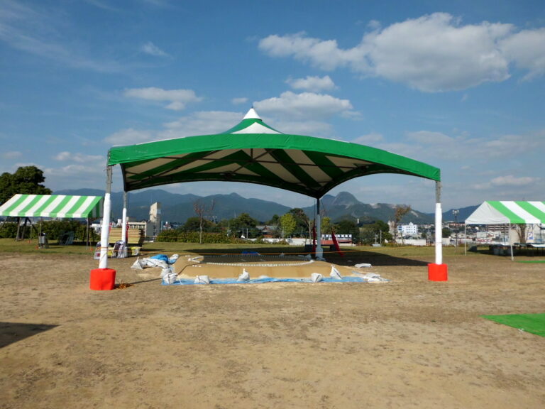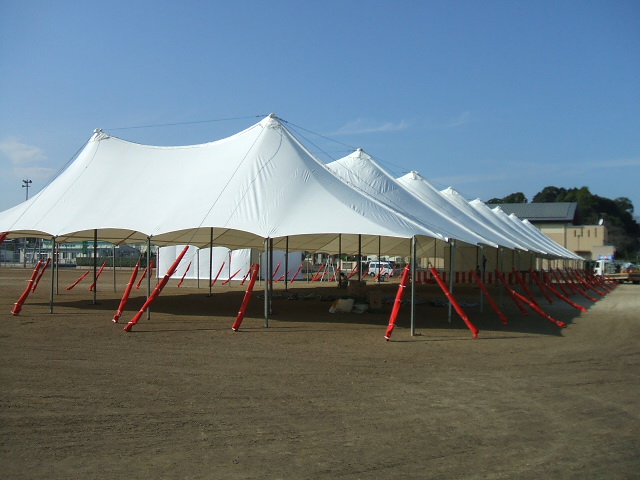イベント事業 産業祭、冠婚葬祭、地鎮祭等の各種イベントの企画・設計・施工まで!! 幅広くあなたのイベントをお手伝いいたします!! 北九州市 スペースワールドカウントダウン会場 ステージテント設営風景 テント 10m×15m 北九州市 起業祭 ステージテント 22.4m×15m 北九州市 起業祭 ステージテント 22.4m×15m 田川市役所 産業まつり テント 20m×20m デパート関係 イベント会場 テント 10m×10m ステージ 5.4m×9m 葬儀会場 テント 10m×10m カーディーラー特設テント 10m×10m レンタル商品 イベントアイテムをレンタルいたします!! ご提案 天幕のみご購入頂いてフレームはレンタル!! 価格は消費税込 メリット かさばるフレームの在庫スペースが不要 ランニングコストが少なくて済む(使用頻度が少ない時) 導入例 例1 2間×3間 天幕文字入れ含む(ロゴ等含まず片面のみ) 2間×3間 フレームレンタル 例2 2間×3間 天幕文字入れ含む(ロゴ等含まず片面のみ) 2間×3間 フレームレンタル(設営込) その他レンタル クイ・ロープウエイト(15kg / 1個)等 小型テント 1間×1.5間、1.5間×2間 2間×3間、2間×4間 3間×4間、3間×5間 大型テント 8M×8M、10M×10M、12M×12M、15M×15M、20M×20M ヨーロピアンテント 間口15M × 3Mスパン、間口20M × 3Mスパン アルプステント 10間 × 32間 フアフア遊具 ハッピーキングダムサーカスゴリラJリーグジャングルバウンズネッシーレイクキリンとんがりお城タコさんスライダーシーワールドJrキャッスル